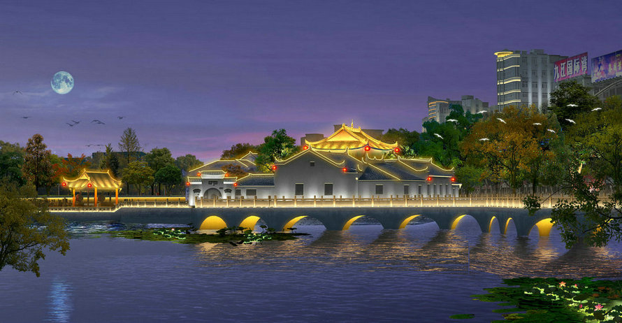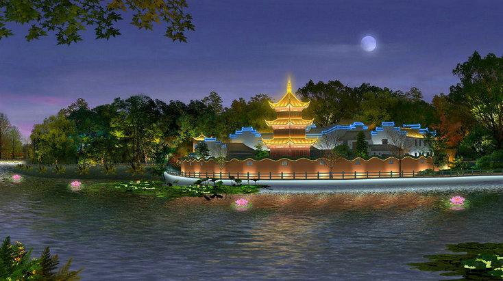 項目范圍涵蓋了環(huán)兩湖周邊(煙水亭、娘娘廟、夕照坪等)、沿江(濱江公園、潯陽(yáng)樓、鎖江樓等)重要節點(diǎn)及長(cháng)虹大道兩側建筑物,利用科學(xué)有效的城市夜景規劃級別的手法進(jìn)行整體性可實(shí)施的工程設計。